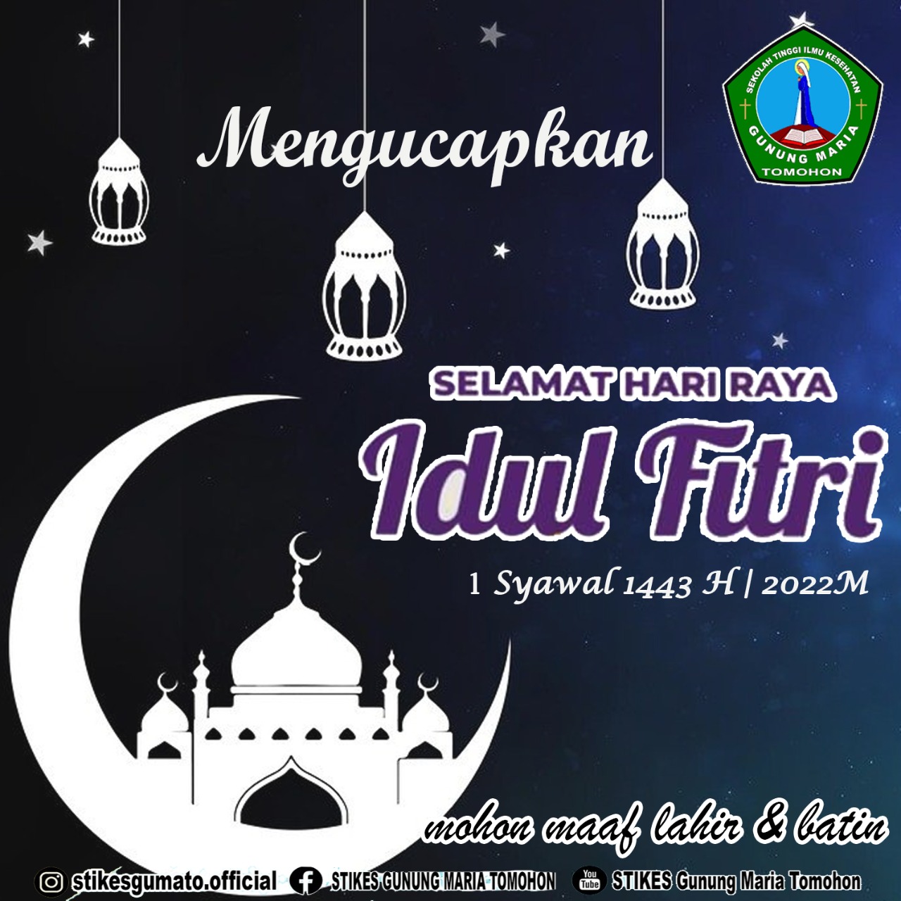Sekolah Tinggi Ilmu Kesehatan Gunung Maria Tomohon mengucapkan selamat merayakan Hari Raya Idul Fitri 1443 Hijriah - Senin, 2 Mei 2022., kepada seluruh Umat Muslim.